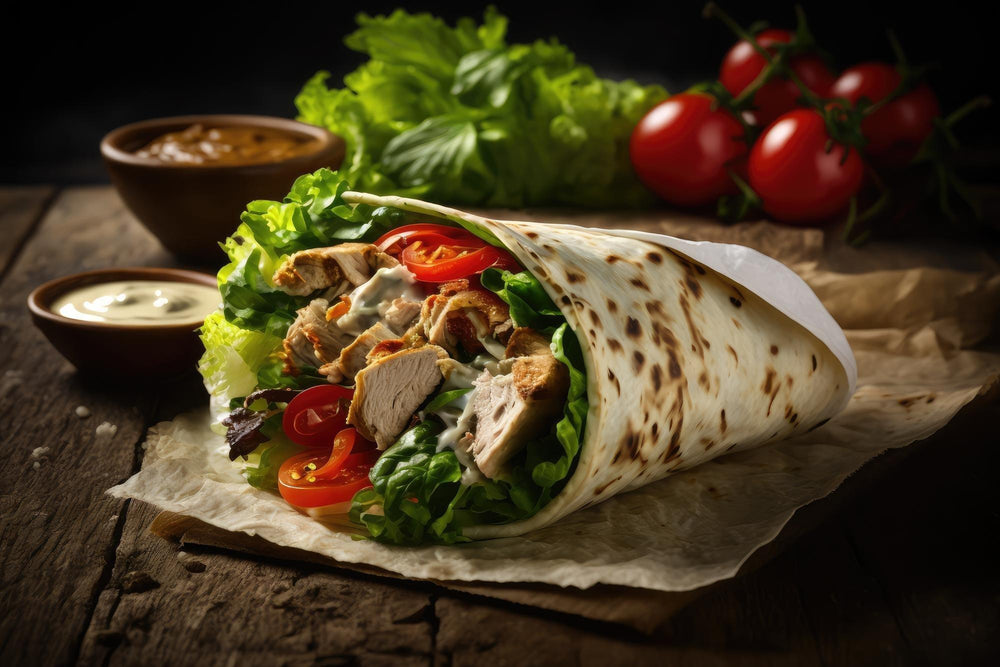 Step 6: Place pitas on the grill until heated through and lightly charred on the outside, about 1 minute per side. To assemble each sandwich, place some sliced chicken on each pita; top with some of the pepper mixture and a good dollop of yogurt tahini sauce.