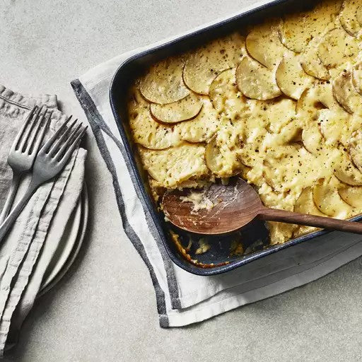 The creamy cheese sauce and tender potatoes in this classic French dish make a delicious flavor combination. Serve potatoes au gratin with a roast pork loin or beef tenderloin, alongside a green salad.