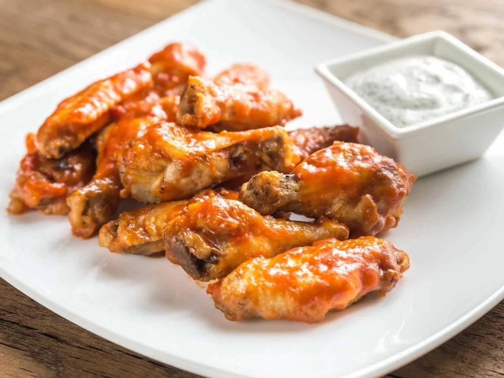 Then, spread the wings out on a sizable baking sheet after draining and reserving the marinade. After baking for 30 minutes, drain the extra oil, add the saved marinade, and thoroughly stir. Oven temperature raised to 180°F. Back in the oven, cook for a further 30 minutes, turning the vegetables occasionally to cover them in the glaze. The majority of the marinade sauce should have evaporated, leaving them sticky and caramelized. Serve with other party snacks on a sizable platter.