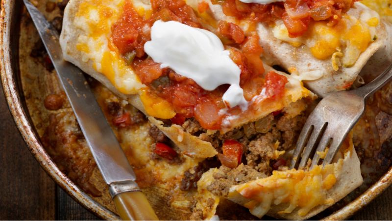 Mexican Cheesy Beef & Bean Tortilla Bake