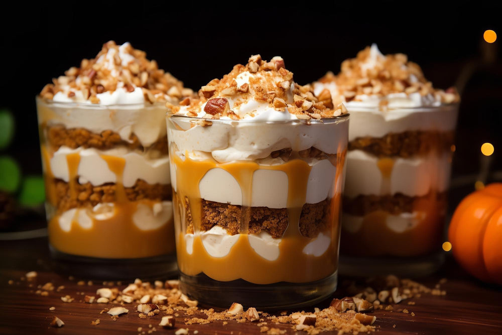 Pumpkin Cream Trifle is a delicious and festive dessert that's perfect for fall and winter holidays. It typically consists of layers of pumpkin-spiced cake or cookies, whipped cream, and a creamy pumpkin pudding or custard. We also add layers of caramel or toffee bits for added flavor and texture. The dessert is usually assembled in a large glass bowl or individual serving dishes, allowing the beautiful layers to be visible.