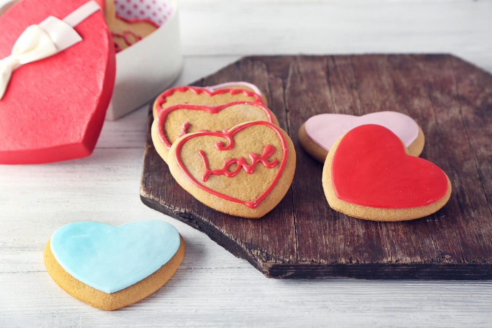 Step 6: Frost each solid 3-inch cookie with Pink Valentine Frosting and top with an open-centered cookie to form a sandwich. Frost the remaining small hearts and serve as separate cookies.