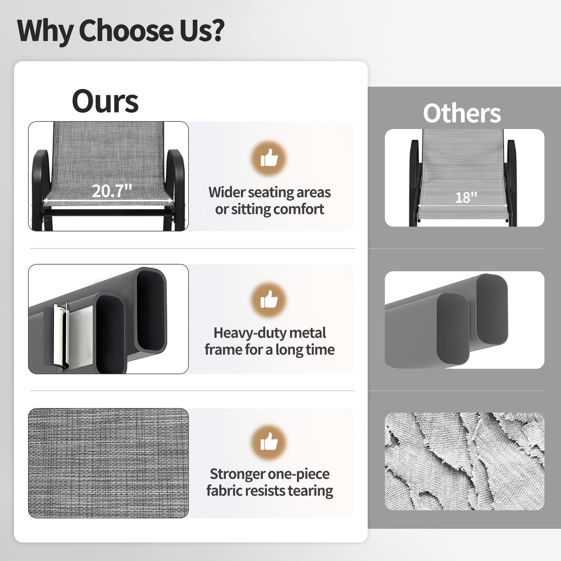 Thanks to its stackable design, you can not only create a perfect place to relax in your backyard, but also stack them together for space saving.