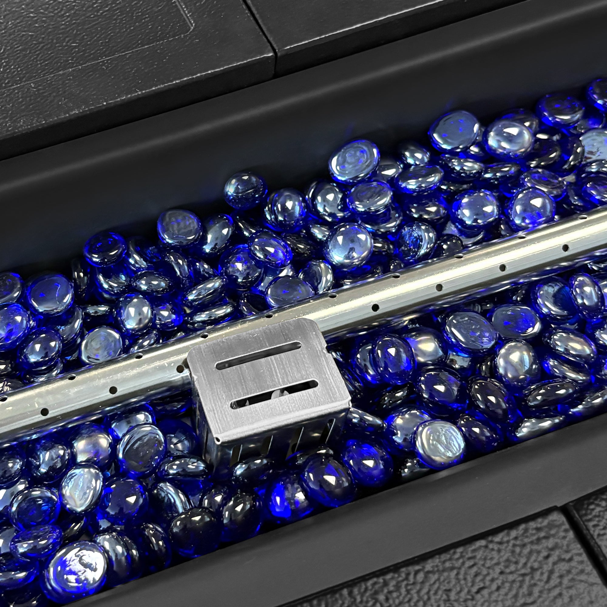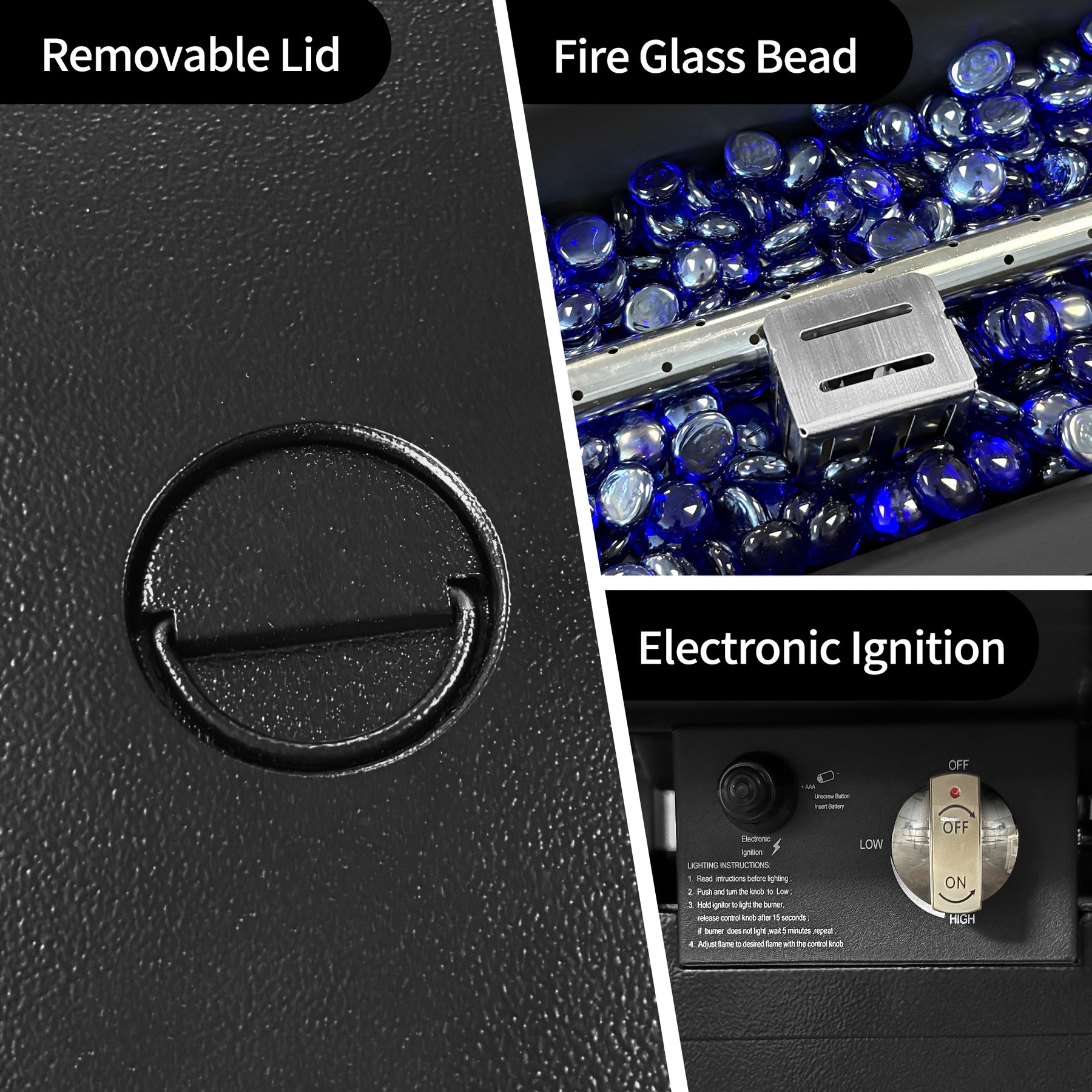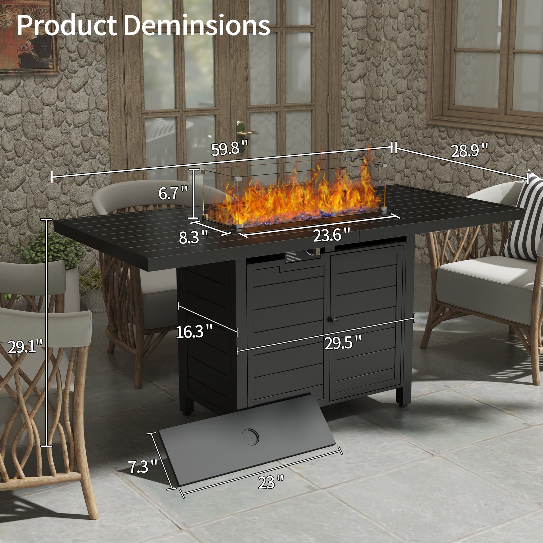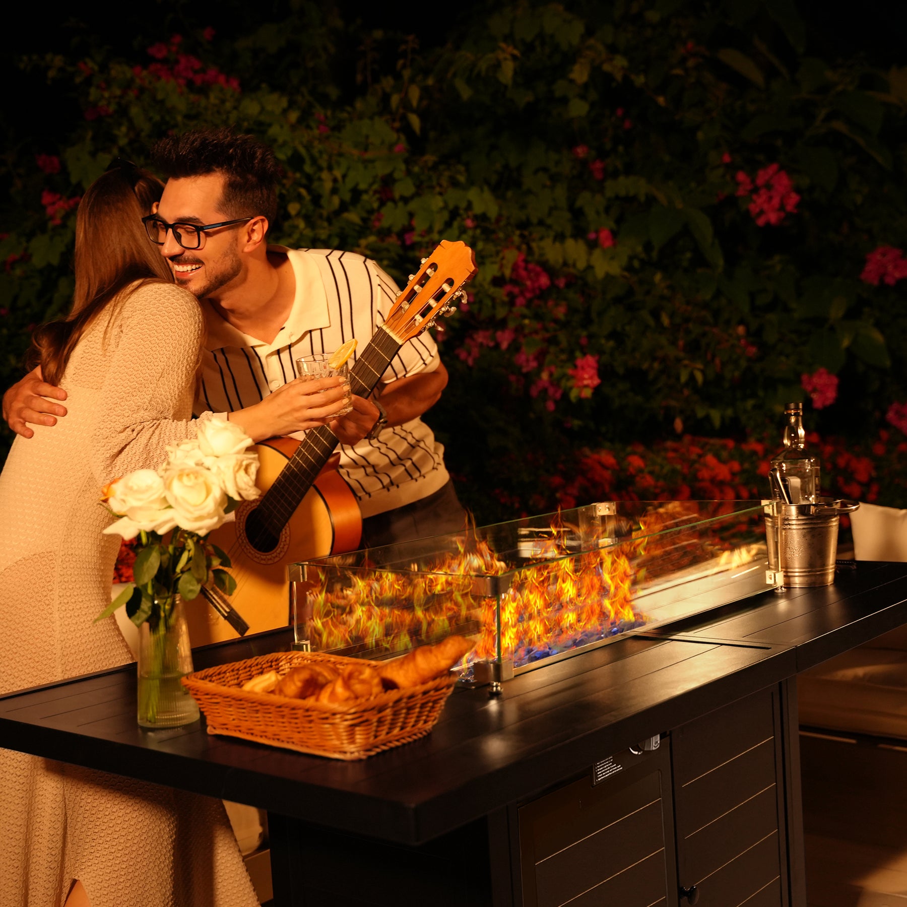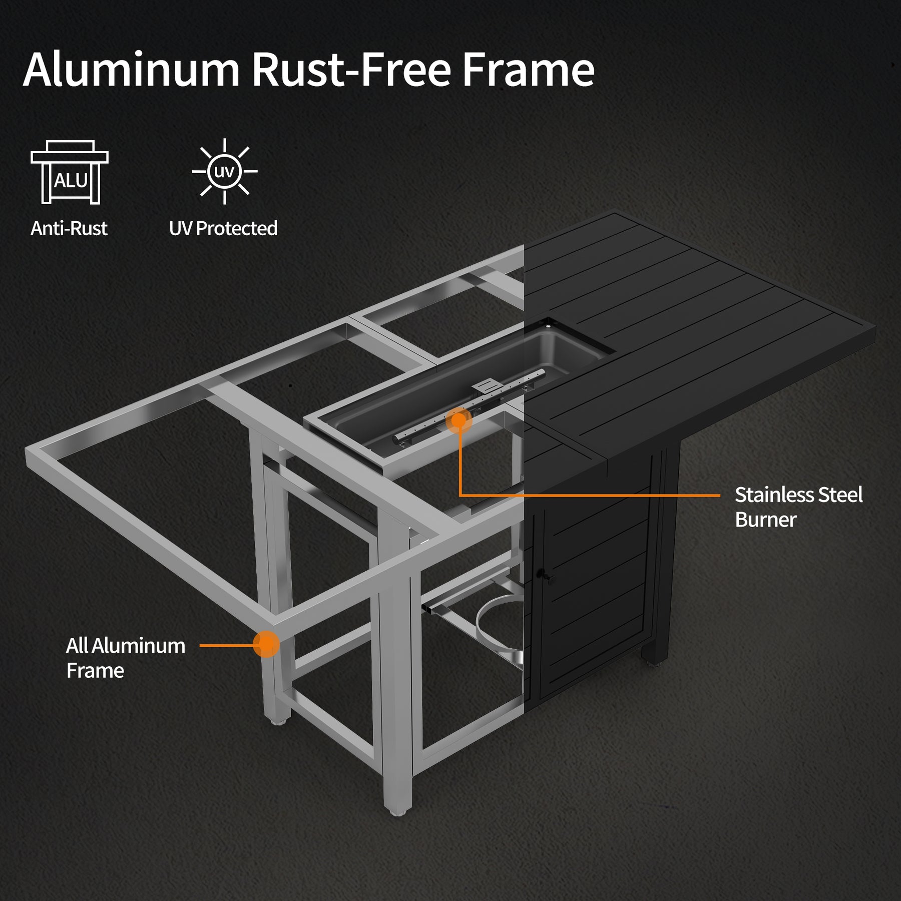 100% aluminum rust-free frame protects your fire table from rust, scratches and harmful UV rays. There’s plenty of leg space underneath and you can hide the propane tank in the cupboard which can be used to operate the fire.