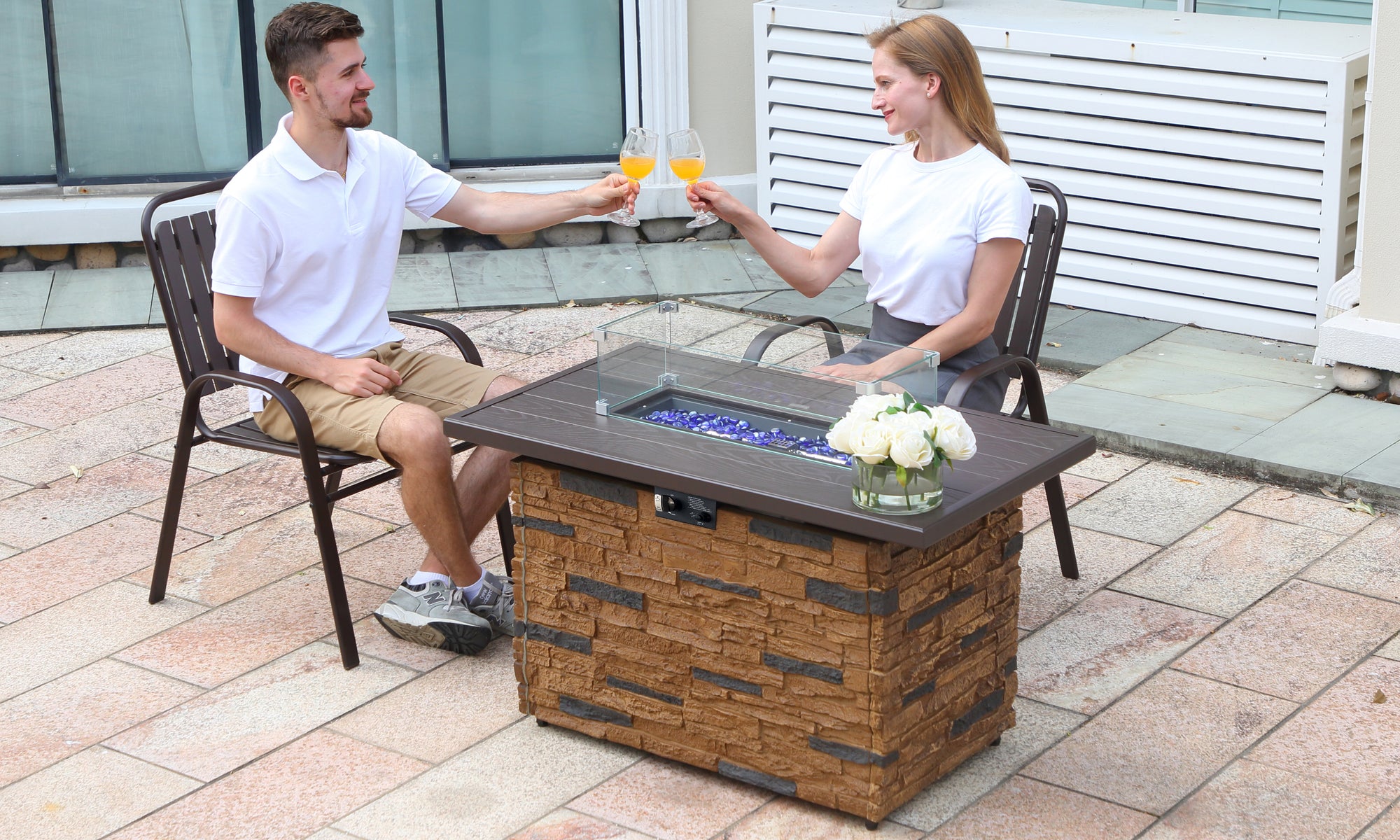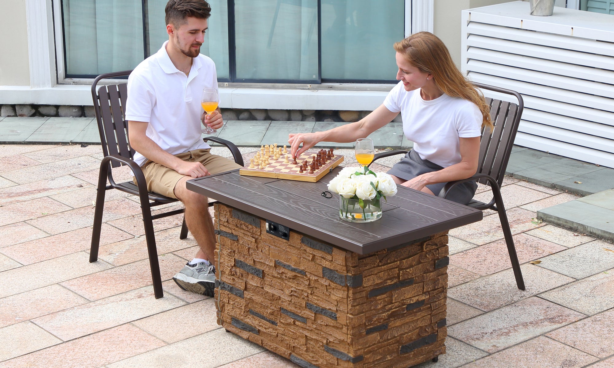 Use in a well-ventilated space. Place it on even surfaces to keep the table stable. Safe to use on wooden surfaces like patios and decks.