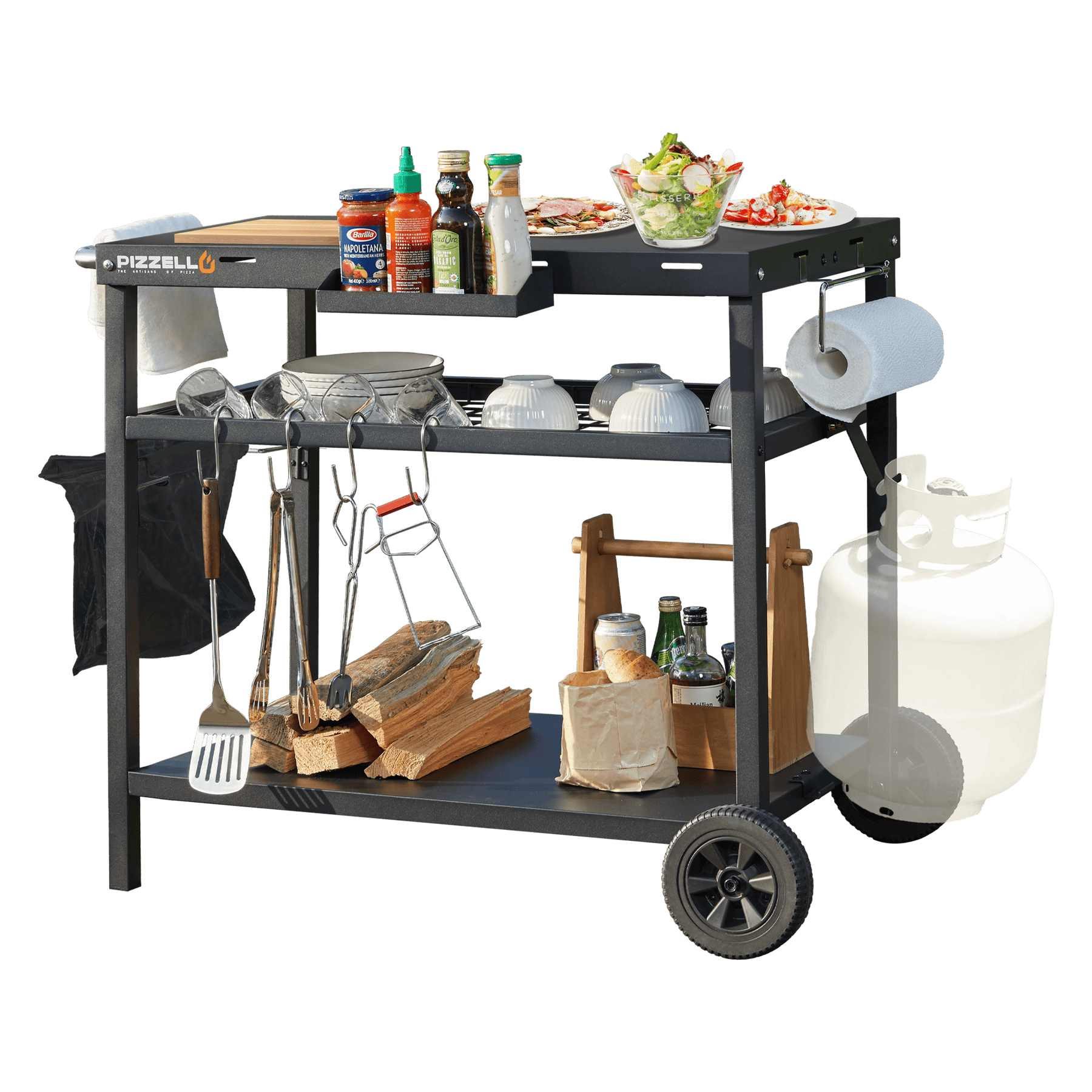 The 33.5“ W x 20.5” D table top means you can easily fit other cooking utensils on it, including Pizzello 12 inch pizza oven.