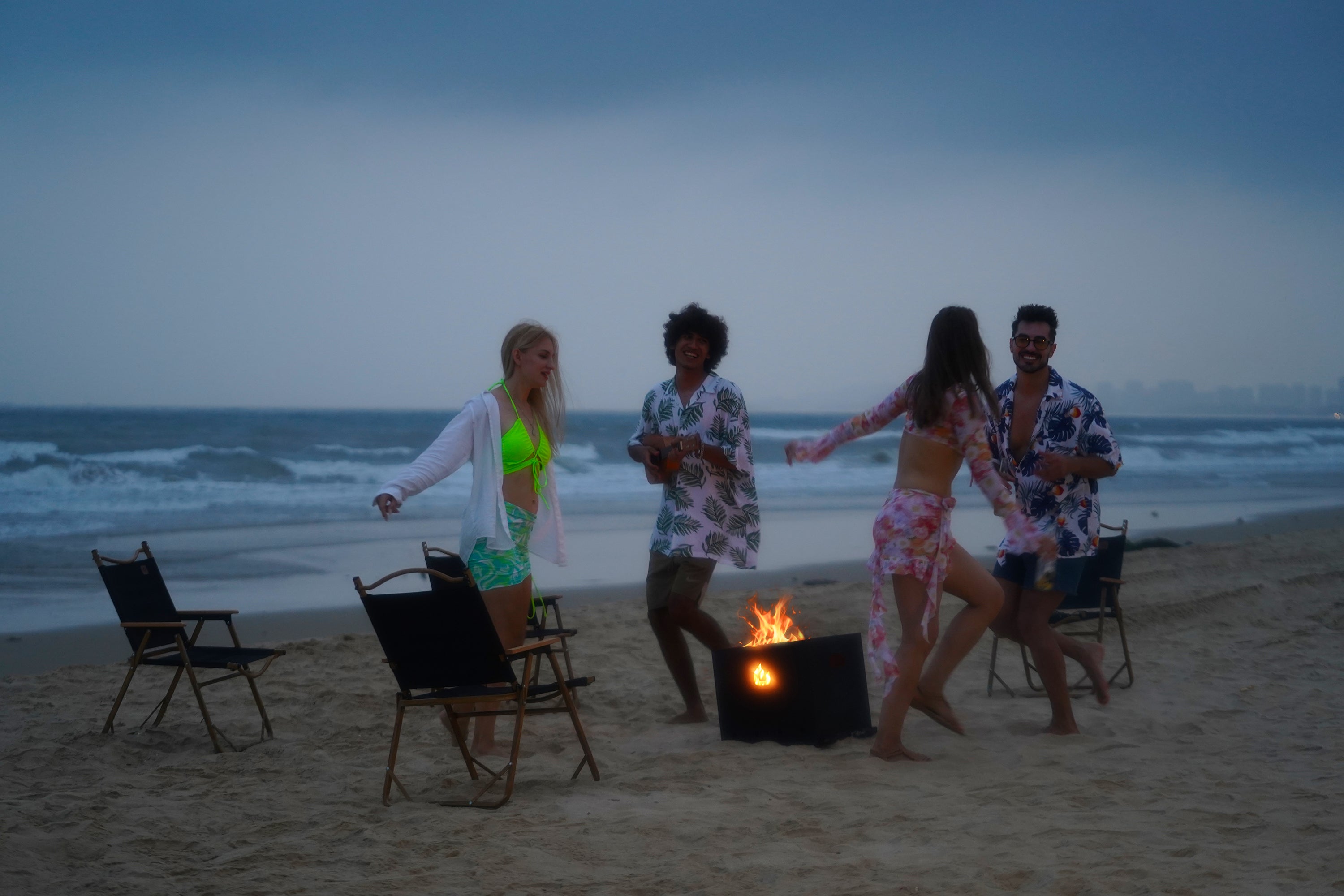 It's a beutiful evening with a firepit.