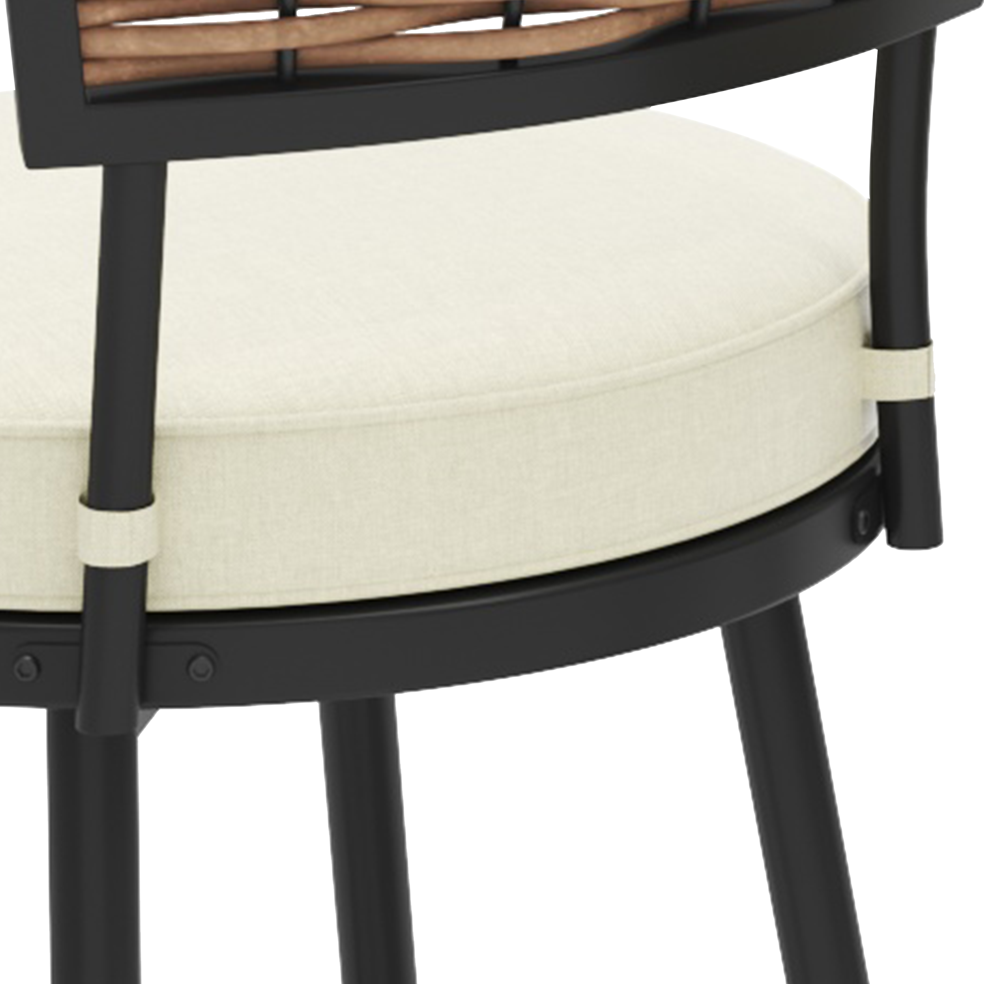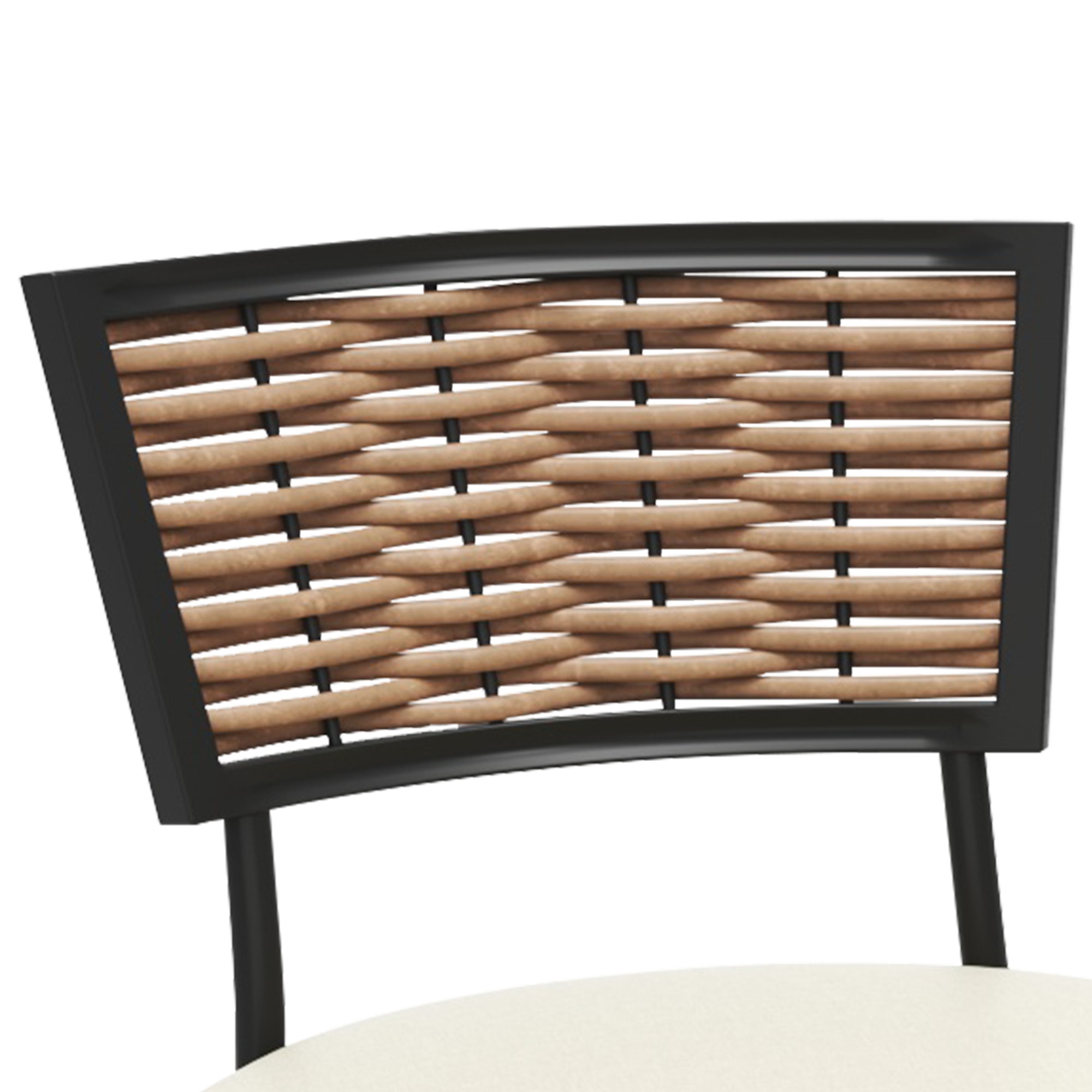 Rust-proof metal and wear-resistant rattan are ideal for outdoor use.