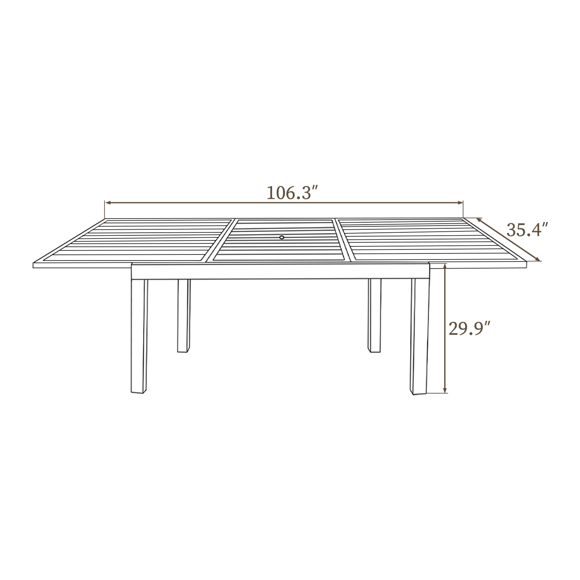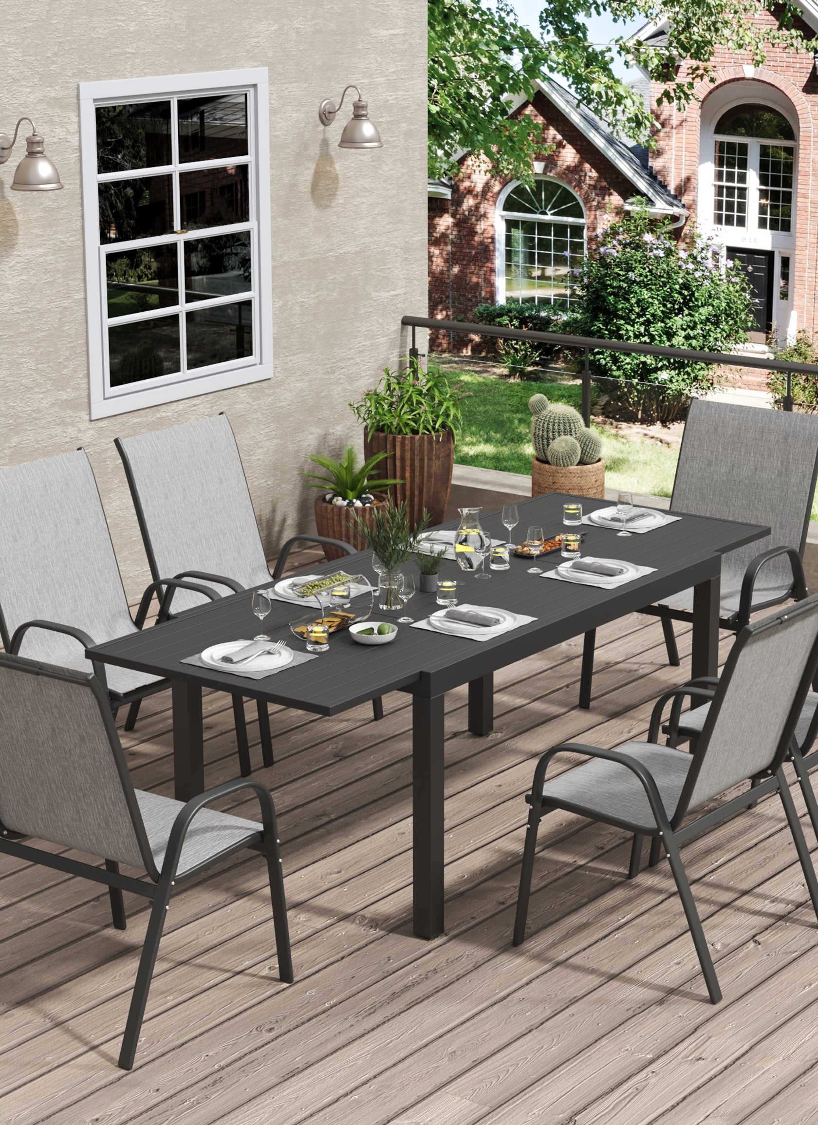 With clean-cut lines, our expandable patio table is the ideal modern accessory for your indoor/outdoor space. Finished with smooth aluminum frames and a slatted design, this outdoor table not only offers a chic, minimalistic look but also provides a stable structure.