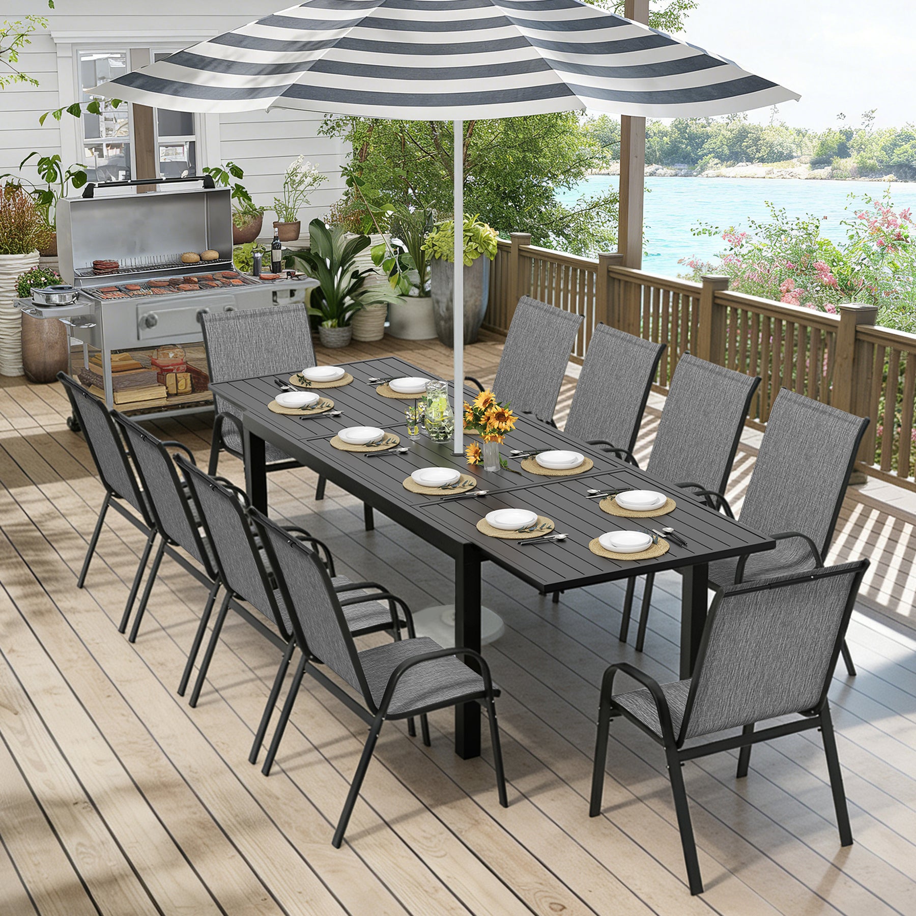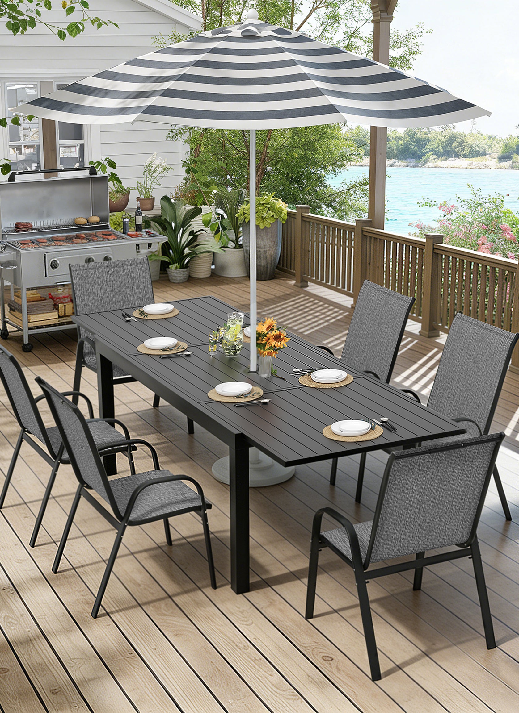 With clean-cut lines, our expandable patio table is the ideal modern accessory for your indoor/outdoor space. Finished with smooth aluminum frames and a slatted design, this outdoor table not only offers a chic, minimalistic look but also provides a stable structure.