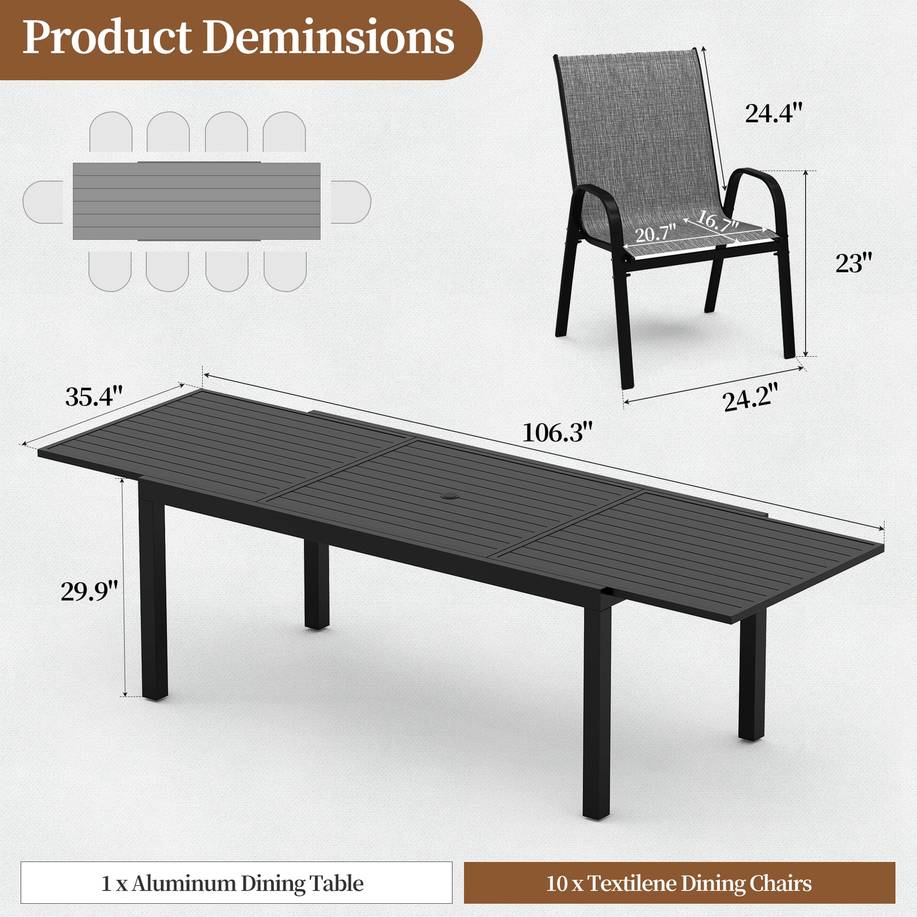 This kitchen table allows you to make it longer or shorter. The tabletop size can expand from 70.9 inches to 106.3 inches.