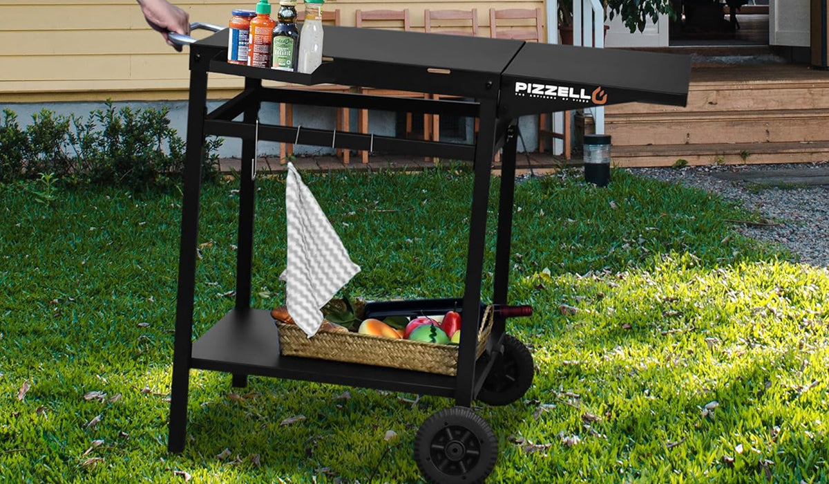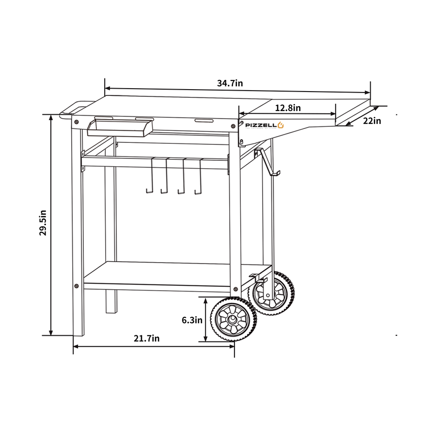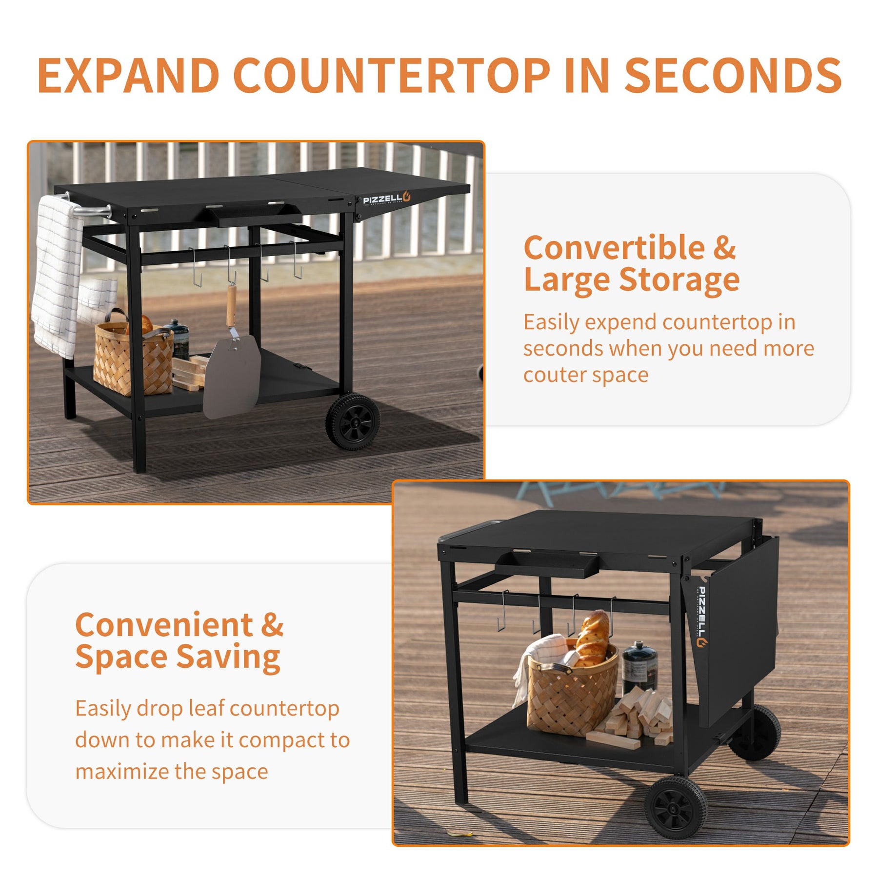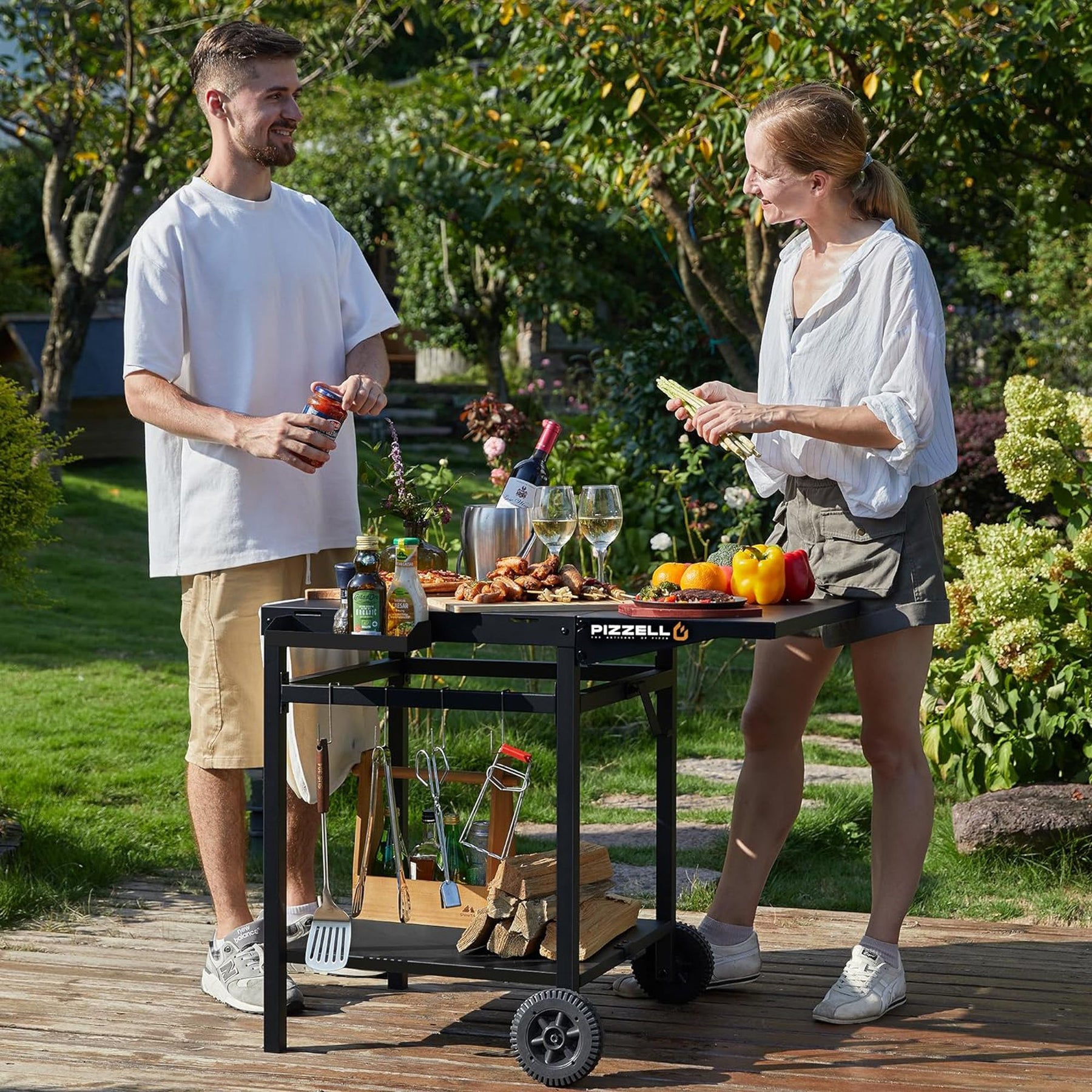 Easy to move trolley for your patio. Perfect as a pizza oven base, grill cart, bar table, and more. Suitable for both indoor and outdoor usage.